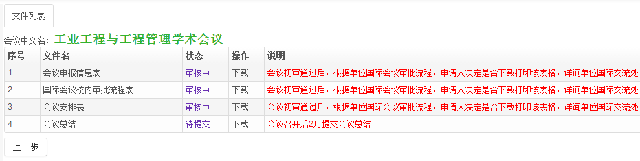 教育部审核通过后,报批状态显示“会议审核通过”。国际处将会依此提供会议批复函。