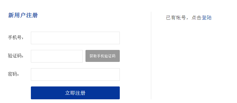 如此前已在平台注册,可直接用已有账号登录。若此前未注册,请点击“立即注册”按钮,进入注册页面。