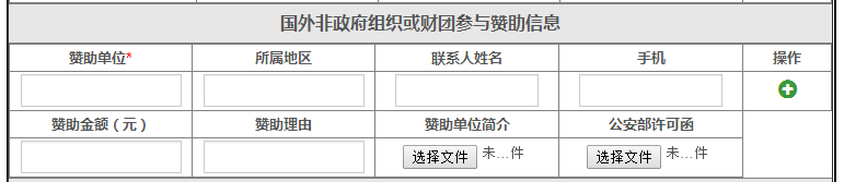 若办会中存在国外非政府组织或财团赞助情况,请详细填写相关信息,并上传“赞助单位简介”文件和“公安部许可函”扫描件,可通过右侧![]()