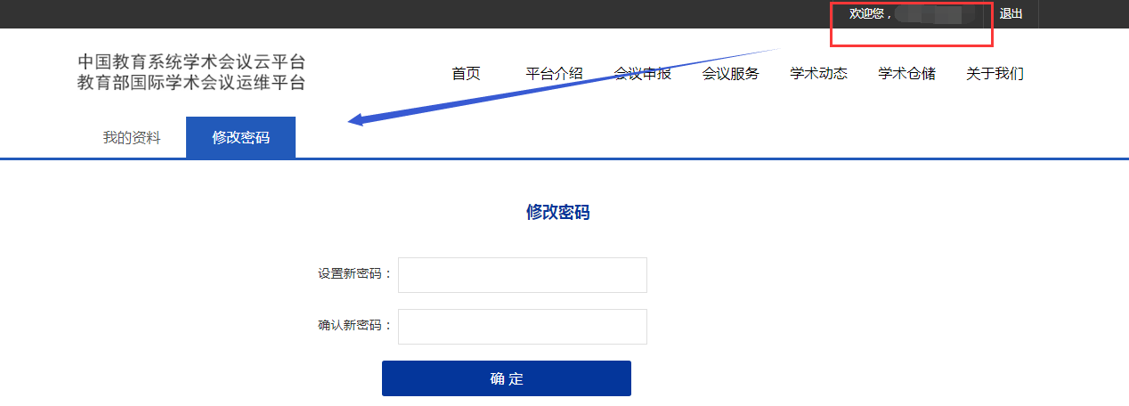 在主平台顶端点击用户名,可以修改登录密码。