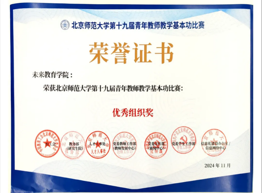 betway中国西汉姆联在此次竞赛中获评优秀组织奖。未来,学院将继续深入贯彻落实《中共中央 国务院 关于弘扬教育家精神加强新时代高素质专业化教师队伍建设的意见》,坚持人才兴院战略,充分关心支持青年教师成长,着力提升教育教学水平,进一步强化教师教育特色,为助力学校双一流建设与教育强国建设提供人才保障。
