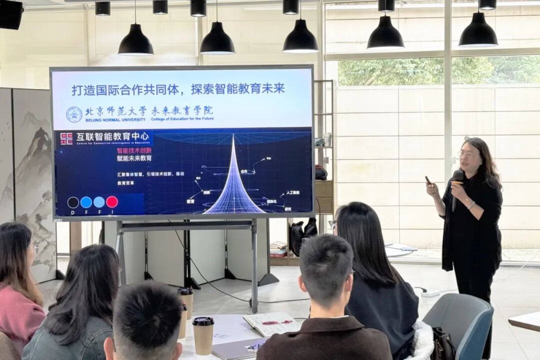 袁莉教授以“打造国际合作共同体,探索智能教育未来”为题,系统介绍CCIE建设进展:与剑桥大学等国际机构合作开展研究, 及时把握全球智能教育的前沿理论和创新实践,已为国内教育政策的制定提供多份参考报告;并与亚欧基金合作推动欧亚高校研究人员共同开展专题研究和促进中小学教师人工智能素养的专业发展。她特别提出建立“高校-中小学-企业”协同发展的智能教育共同体,有效地开展教育智能体(Educational Agents)的课堂实践和理论研究。