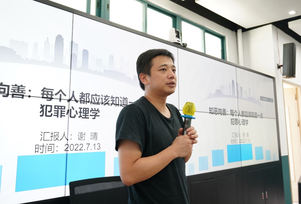 本次学术研讨活动的第二部分,由学习委员谢晴博士生结合自己的教学和实践经验,介绍犯罪心理画像、谎言识别、人身危险性评估等犯罪心理学技术在公安司法实践中的应用。谢晴博士生就职于湖南警察学院,任管理系教师,目前跟随北师大心理学部的寇彧教授从事社会性发展与健康人格教育的相关研究。