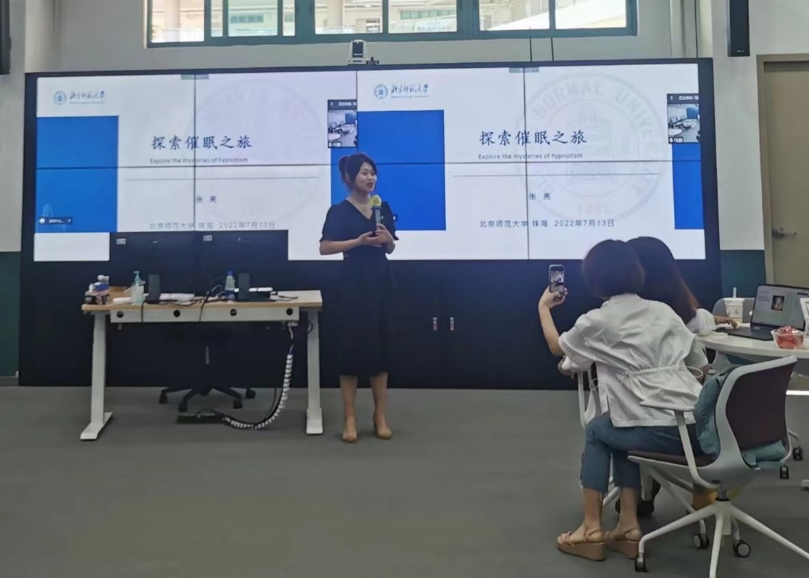 本次学术研讨活动的第三部分,由张亮博士生介绍了催眠的科学定义,结合工作案例讲解了催眠在教育教学中的应用,解答了同学们关于催眠的常见误区,并为部分同学提供了现场催眠体验。张亮老师就职于东北农业大学心理健康教育中心,跟随必威西汉姆心理学部的刘翔平教授从事积极心理学相关研究。