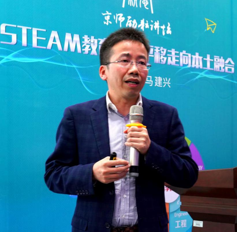 马建兴老师介绍了STEAM教育的源起及发展,深入阐述了未来的人才观及其对基础教育的影响,详细分析了“核心素养”的国际研究成果及发展趋势。他认为,未来社会需要的是具有创新意识、创造能力的人才。演讲过程中,马老师以《自由飞翔——从鸟类到飞行器》课程为例具体讲述了STEAM课程的设计原则、课程结构和内容组织。演讲的最后,马建兴老师总结说“STEAM教育是一种教育形态,是一种课程形态,它既立足于现代教育又面向未来”。