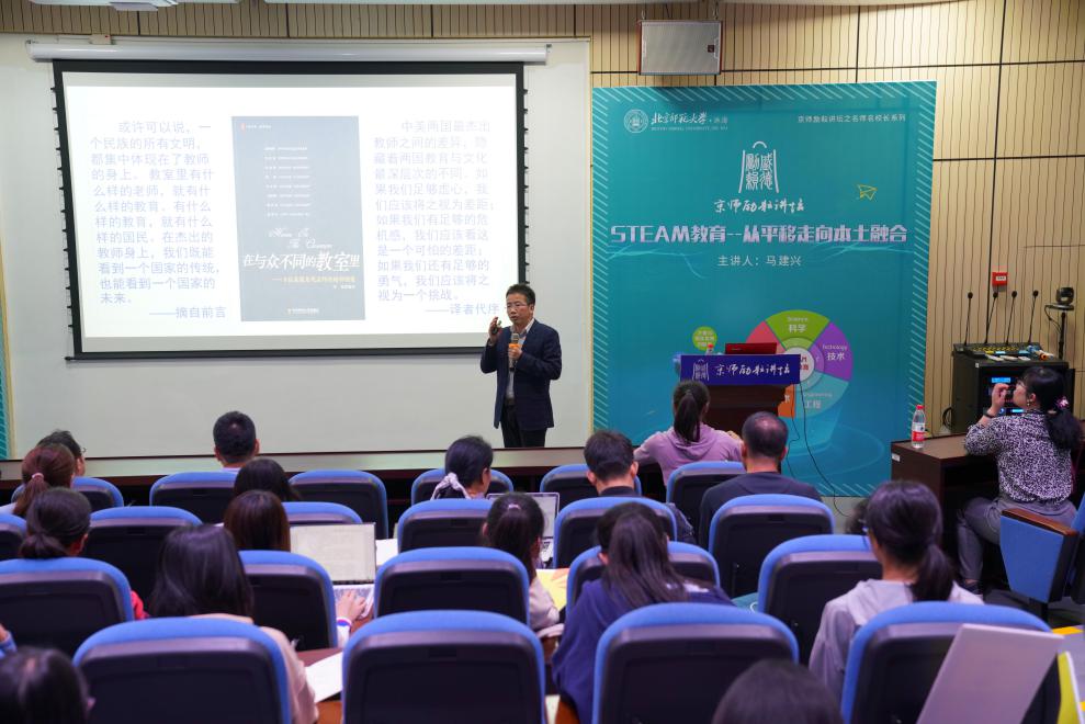 11月22日晚7点,京师励耘讲坛名师名校长系列第六讲在木铎楼A215举行,中学高级教师、苏州教育科学研究院马建兴老师,以“STEAM教育——从平移走向本土融合”为题,给betway中国西汉姆联师生带来了一场生动活泼的讲座。讲座由betway中国西汉姆联副院长孙波老师主持,胡永建副院长、路淑英老师、庄秀丽老师、包孟红老师和我院本科生及研究生参加了此次讲座。