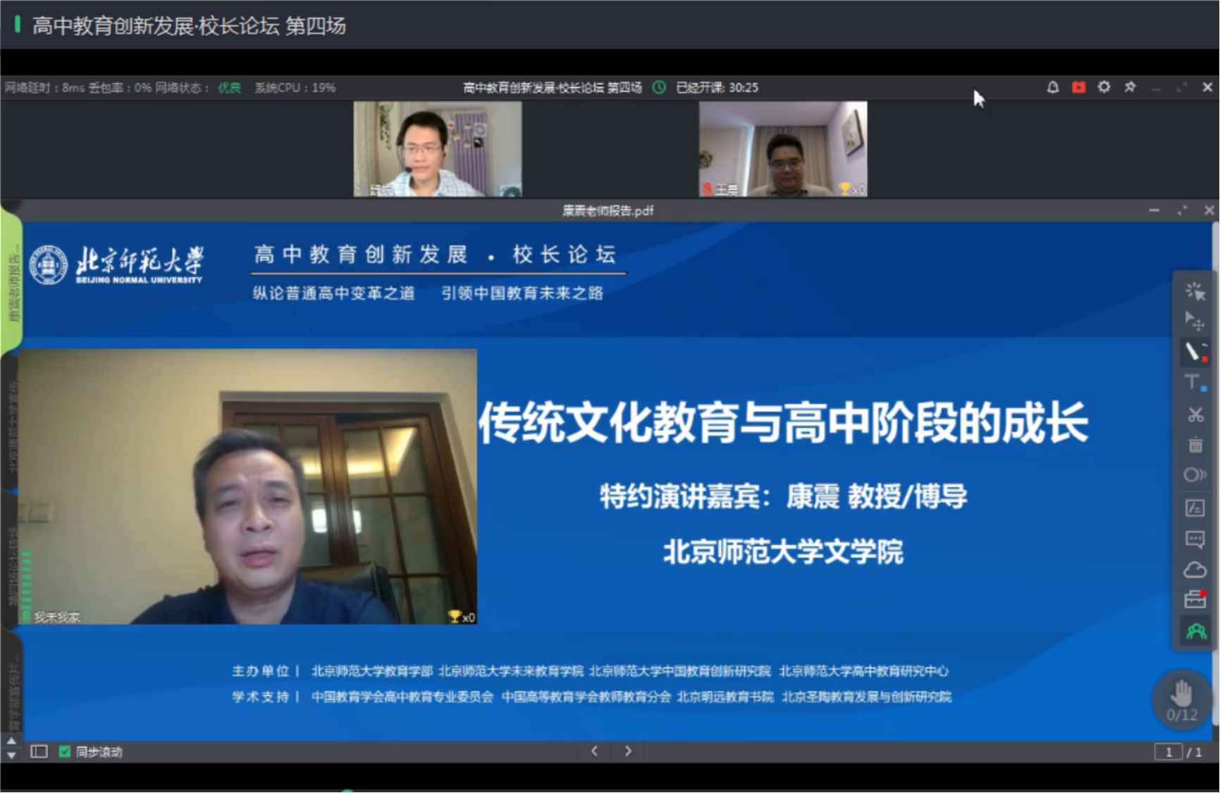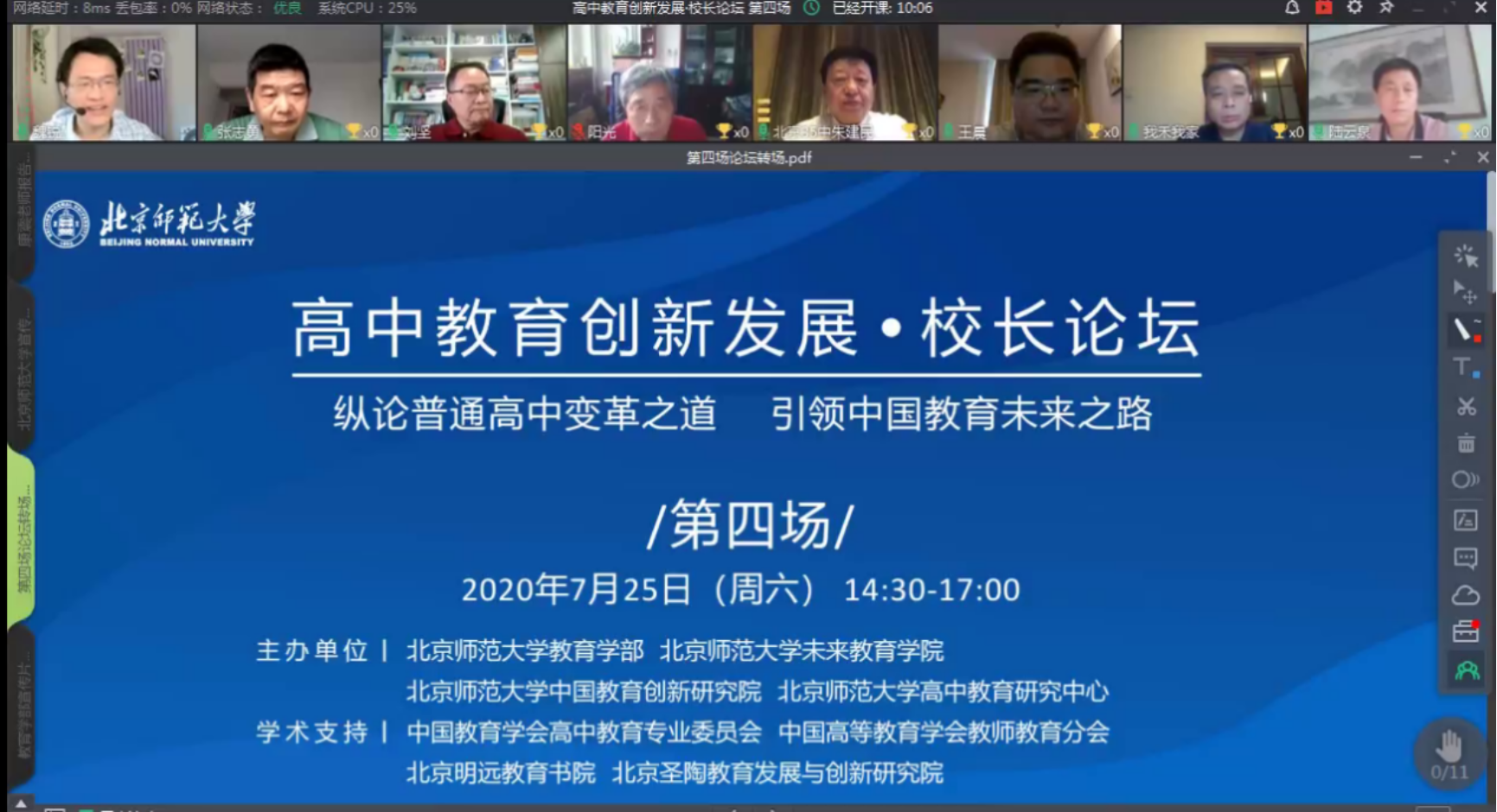 7月25日,时值2020年北京高考放榜之际,由必威西汉姆教育学部、betway中国西汉姆联、必威西汉姆中国教育创新研究院、必威西汉姆高中教育研究中心等单位主办的“高中教育创新发展·校长论坛”第四场如期举行,围绕高中教育中的核心问题和发展方向展开了讨论交流。本次论坛同时在ClassIn和抖音平台上面向全社会直播,吸引了全国各地的教育部门领导、校长、教师、教研员、在读学生等共3.2万人次在线观看。