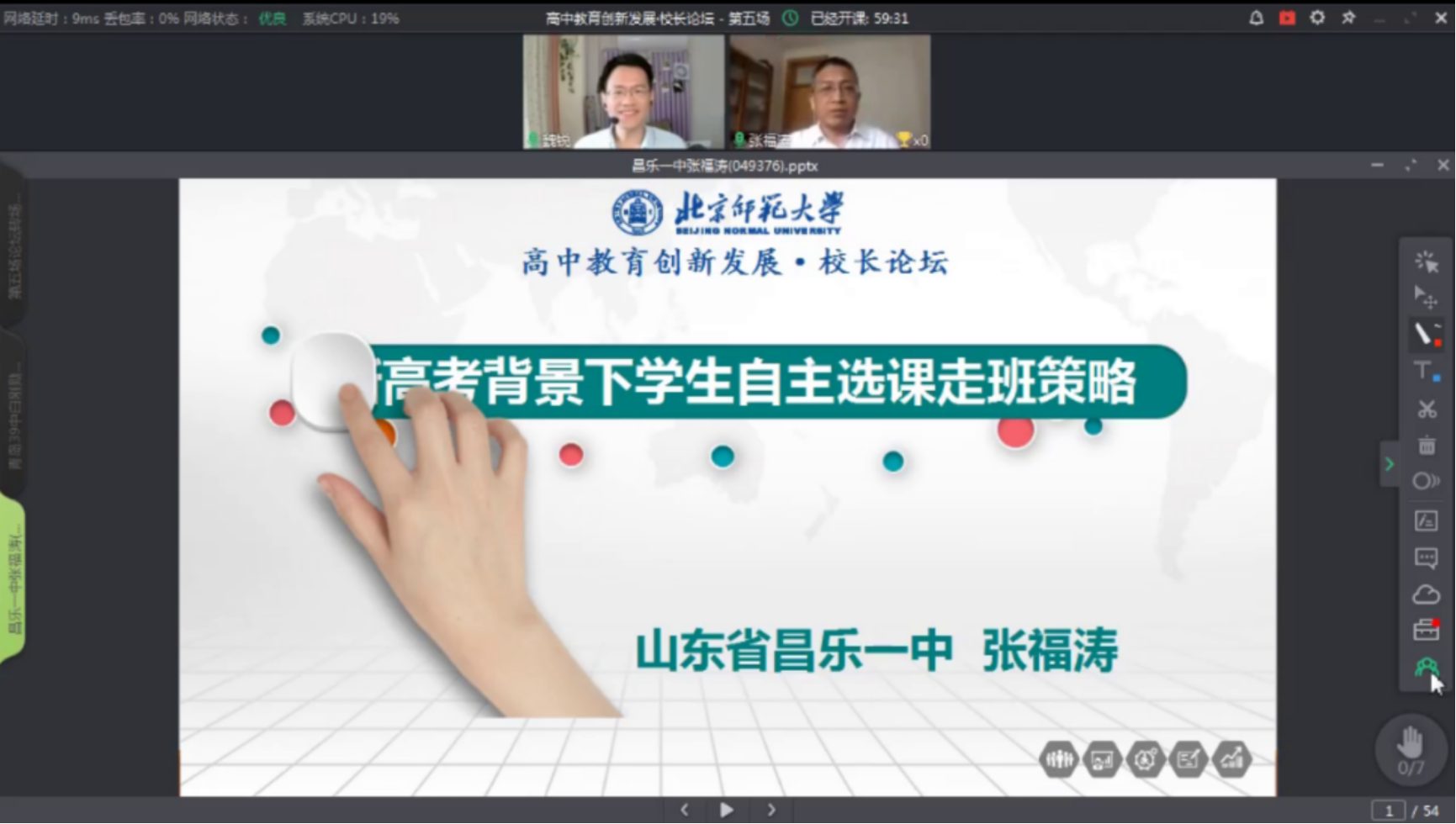 本次论坛邀请了山东青岛第三十九中校长、山东省十大教科研名校长、齐鲁名校长、山东省第十三届人大代表白刚勋校长,山东省昌乐一中常务副校长、山东省教学能手、山东省科研十大名师、山东省教育信息化委员会委员张福涛校长作为主讲嘉宾,分别作了题为“普通高中国家课程项目式教学的实践探究”和“新高考背景下学生自主选课走班策略”的专题报告。此外,必威西汉姆中国教育创新研究院院长、中国基础教育质量监测协同创新中心首席专家、特约国家督学、九三中央教育文化专委会主任刘坚教授,必威西汉姆教育学部部长助理、必威西汉姆科学教育研究院副院长、必威西汉姆未来教育高精尖创新中心学科教育实验室主任、教育部中学教师培养教学指导委员会委员王磊教授出席了本次论坛并担任主访专家,与嘉宾们就相关话题展开了深入交流和探讨。必威西汉姆原副校长、高中教育研究中心主任陈光巨教授应邀参加了本次论坛。论坛由必威西汉姆教育学部副部长王晨、必威西汉姆中国教育创新研究院副院长魏锐主持。
