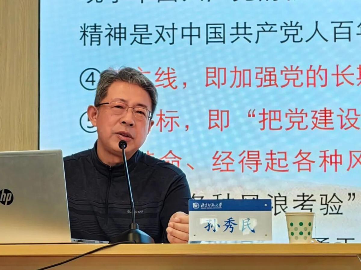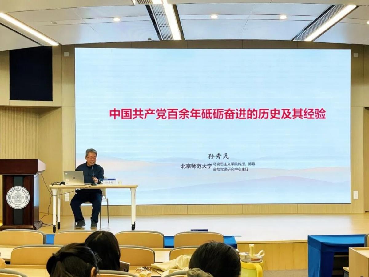 孙秀民教授回顾了我们党夺取新民主主义革命伟大胜利、完成社会主义革命和推进社会主义建设、进行改革开放和社会主义现代化建设、开创中国特色社会主义新时代的伟大征程,指出从党建立时全国党员只有五十余人发展到如今全国党员超过一亿人,我们党始终坚持以“为中国人民谋幸福,为中华民族谋复兴”为初心使命,书写了中华民族几千年历史上最恢宏的史诗。孙秀民深入剖析了马克思主义中国化的三次飞跃,系统阐释了习近平新时代中国特色社会主义思想的核心内容,强调不仅要掌握“十个明确”“十四个坚持”“十三个方面成就”等主要内容,而且要把握这一思想的世界观、方法论和贯彻其中的立场观点方法。孙秀民勉励同学们,要加强对于党史、党的路线方针政策的学习;牢记空谈误国、实干兴邦,坚定信心、埋头苦干,用新的伟大奋斗创造新的伟业。