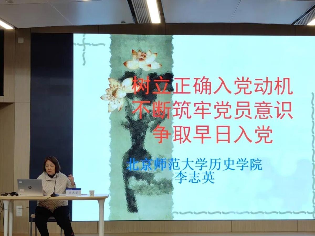 随后,历史学院李志英教授聚焦入党动机,为学员讲授《树立正确入党动机,不断筑牢党员意识,争取早日入党》,从树立正确的入党动机、持之以恒学习党的创新理论、学习党章党规等方面为学员展开讲解。