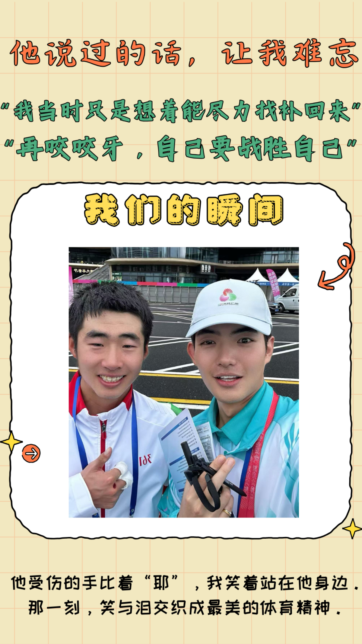 这一刻,我们不再是单向的服务者,而是拼搏精神的见证者、接收者和传递者。运动员用行动诠释了何为“强者”——不是永不跌倒,而是跌倒后依然能笑着站起来继续前行。这份精神力量,成为了我们面对未来学业与生活中任何困难时,一份宝贵的精神资产。服务的关系,由此升华为一种跨越身份的、基于相互激励的深厚情谊。