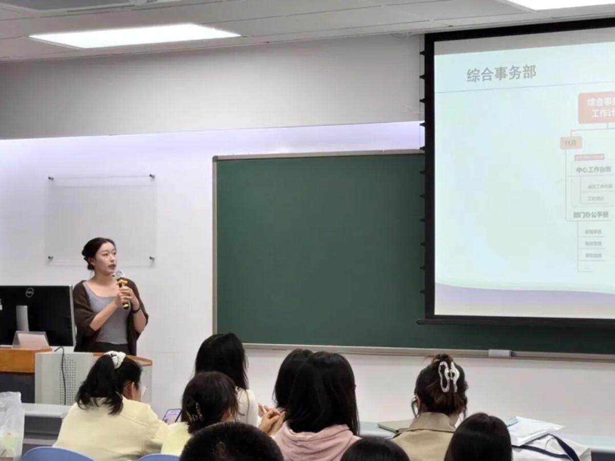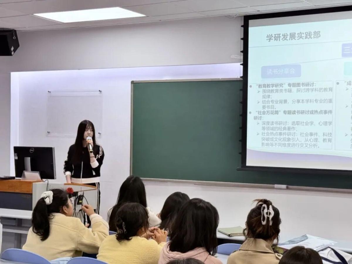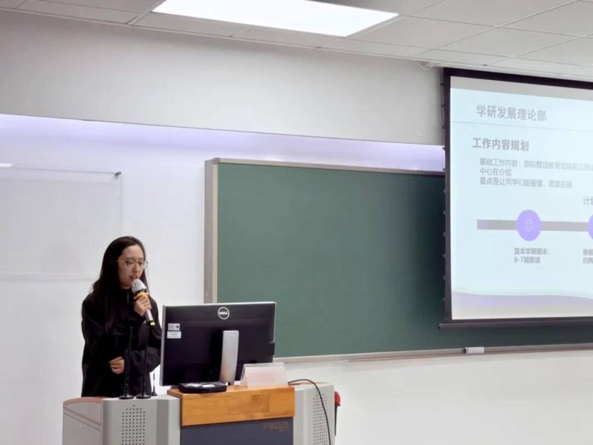 在“认识部门”环节,学研发展理论部、学研发展实践部、媒体宣传部、综合事务部的部长依次登台,围绕部门核心职能、近期工作重点及长远发展规划进行详细讲解,让全体成员对各部门工作有了全面认知,也为大家后续精准对接工作、发挥自身优势提供了清晰指引。