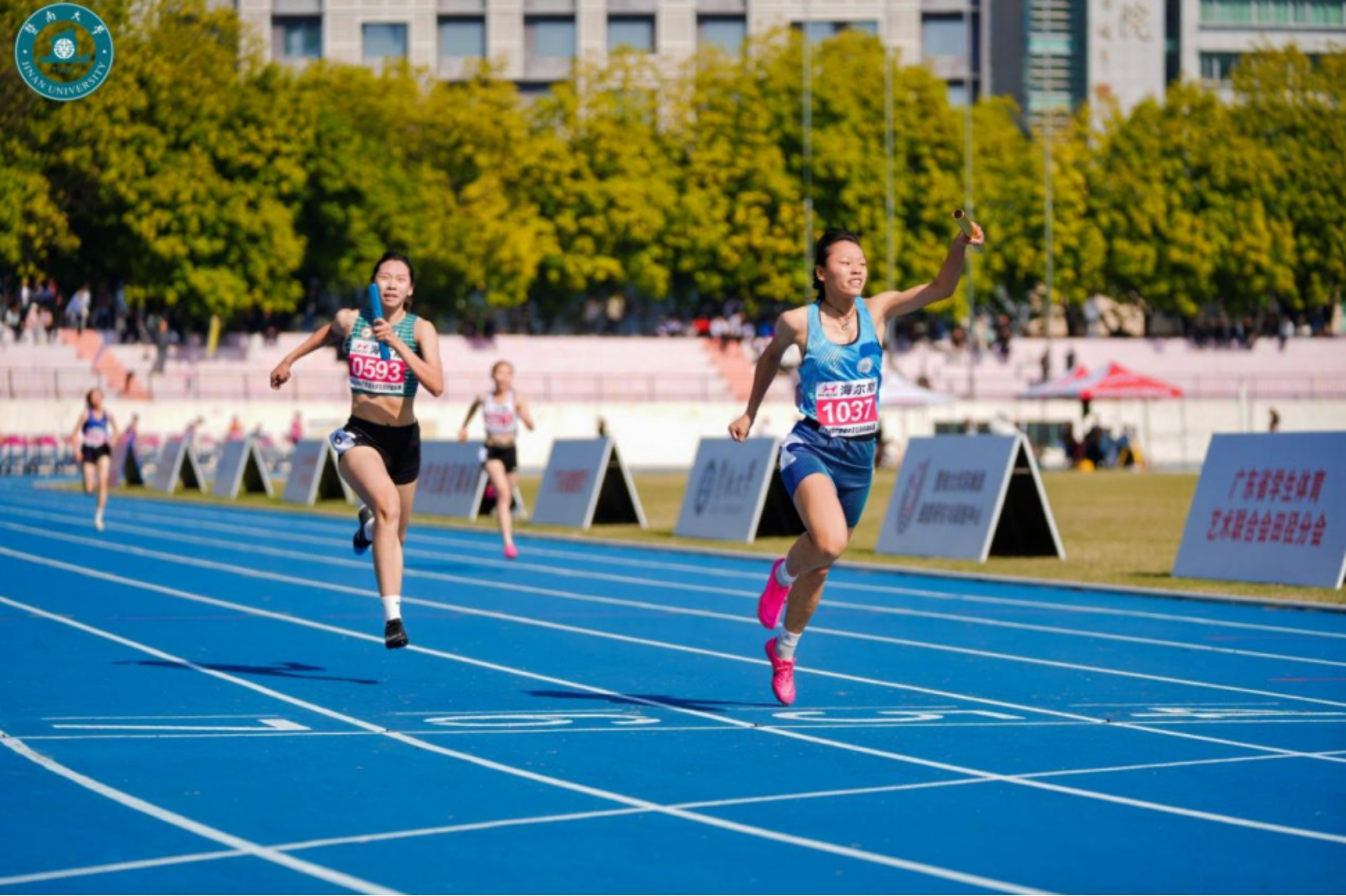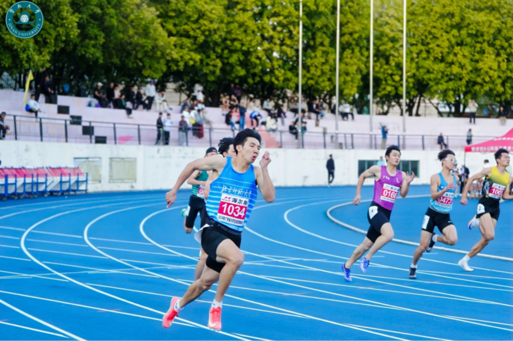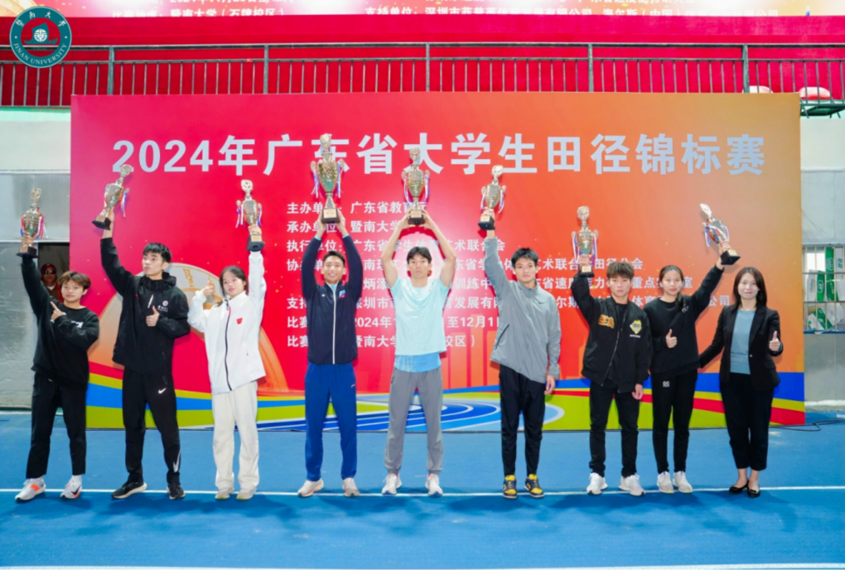 2024年11月28日至12月1日,由广东省教育厅主办、暨南大学承办的2024年广东省大学生田径锦标赛在暨南大学(石牌校区)举行,此次比赛共有来自全省126所高校的1867名运动员参加,珠海校区田径队参加了此次比赛。由珠海校区体育教育专业本科生和体育教学专业硕士组成的田径队队员在比赛中团结协作、勇于拼搏、赛场上展示了北师大人的风采,为北师大珠海校区争得了荣誉。获得1金、5银、6铜、1个第四名、6个第五名和1个第六名,并获得团体一等奖和乙A组团体总分第二名的优异成绩,尤其是团体总分由上届第八名一跃成为本次比赛的第二名,实现了成绩上的重大突破。这是珠海校区田径队自参加广东省大学生田径比赛以来取得的最佳战绩。孙璞、陈静文、李福有和李雯被赛会评为优秀教练员。