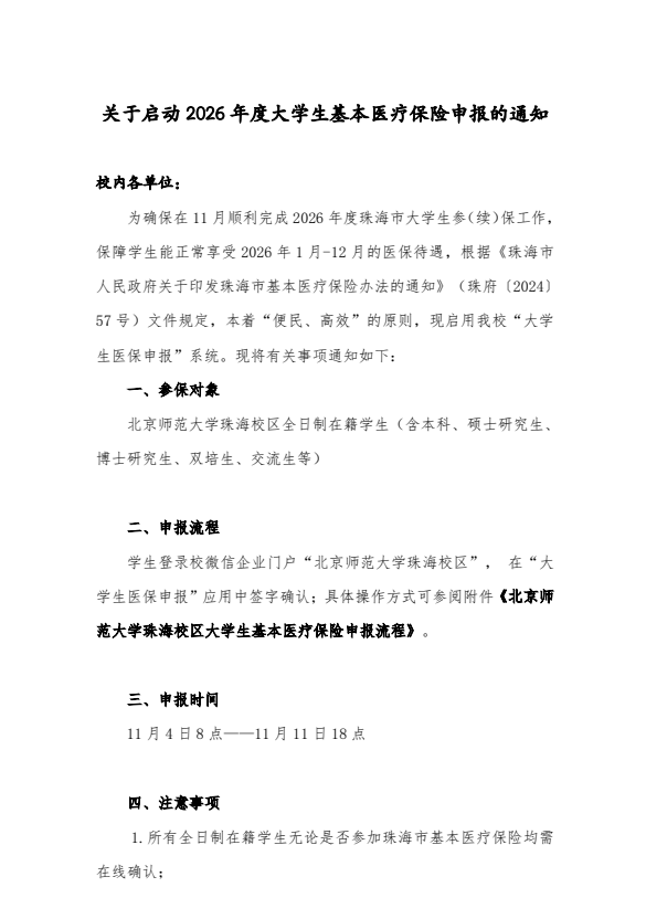 【转发】关于启动2026年度大学生基本医疗保险申报的通知