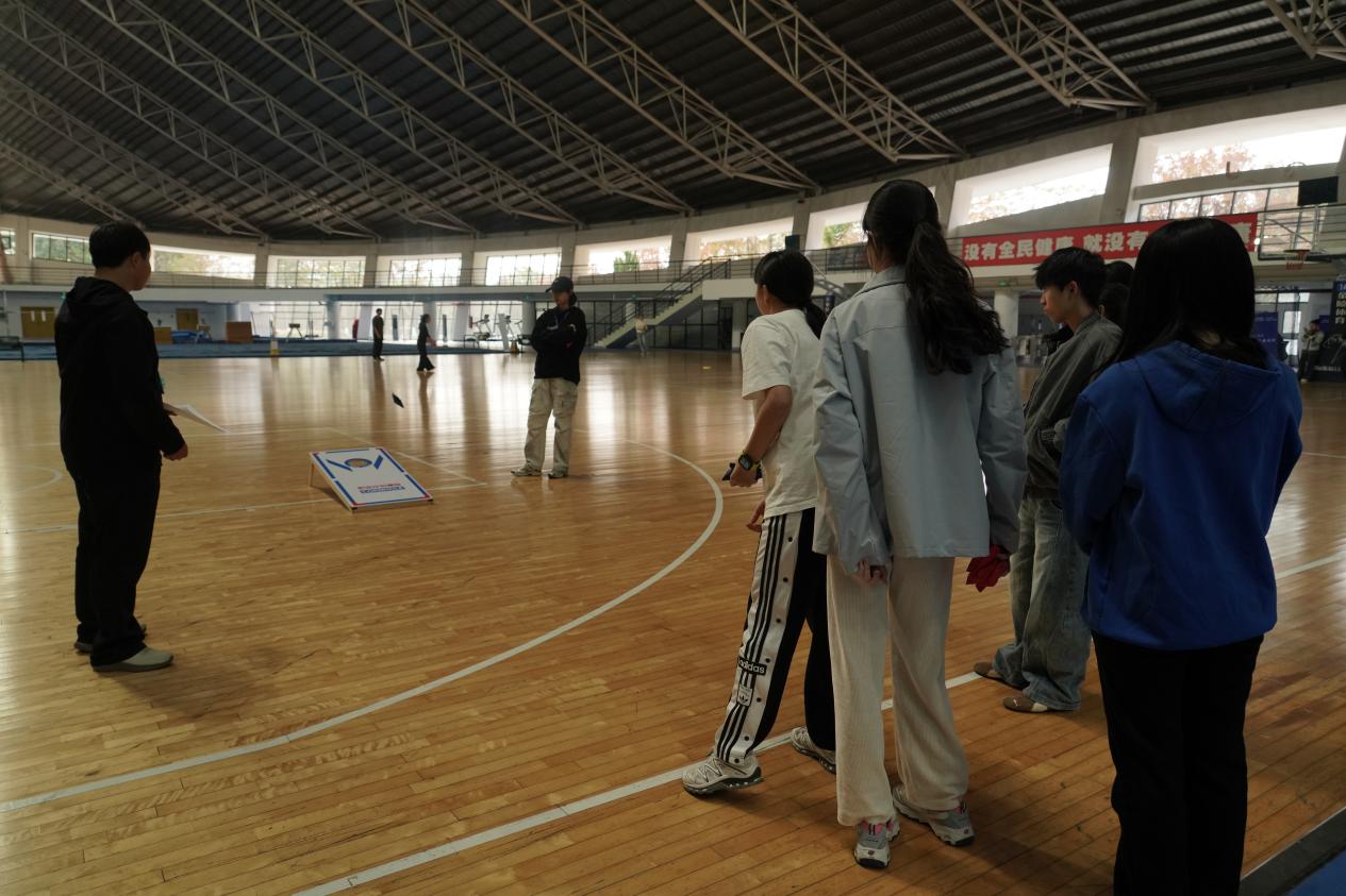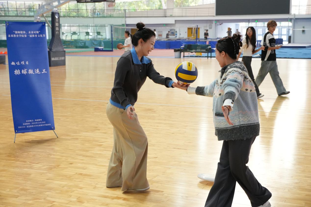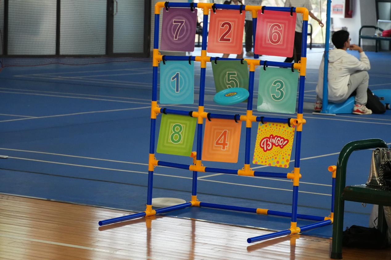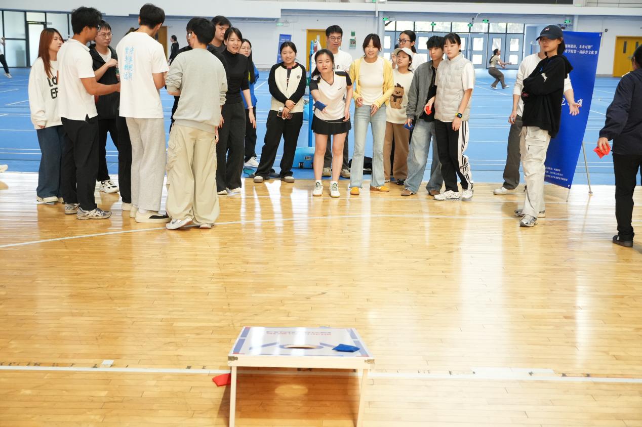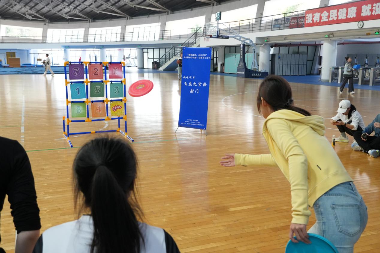 趣味项目区成为全场笑声与欢呼最为集中的区域。沙包投准、摸石头过河、飞盘九宫格射门和排球搬运工等项目同步展开,既考验个人技巧,更强调团队之间的默契与协作。参赛队员们全情投入、配合默契,在轻松愉快的氛围中展现出智慧与敏捷。场边观众也不断加油助威,欢呼声、笑语声此起彼伏,构成一幅生动而温暖的校园体育画卷。
